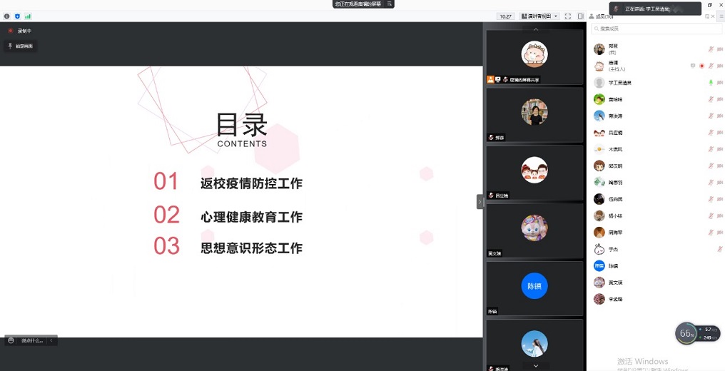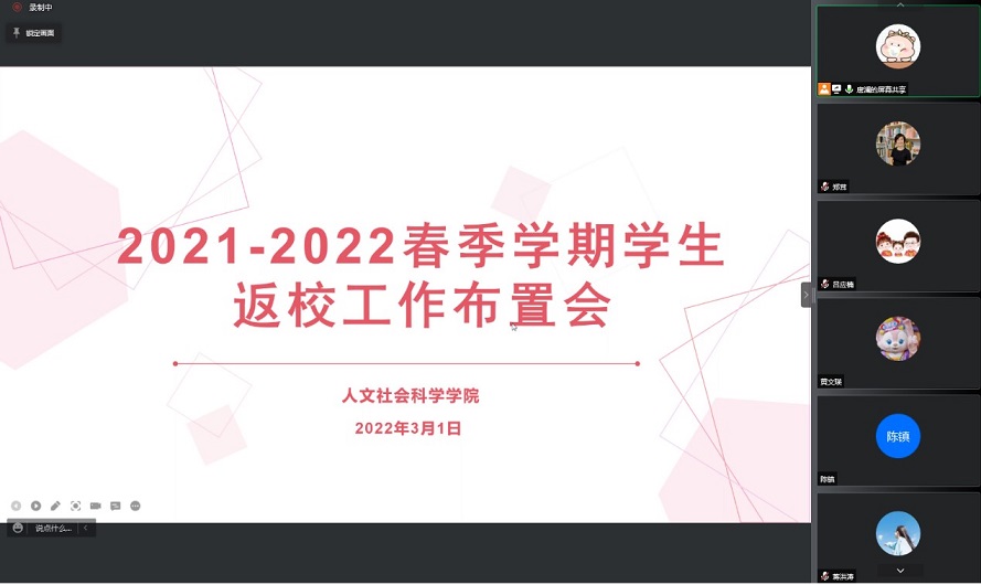 为切实做好2022年春季学期学生开学返校工作,保障学生顺利、安全返校,3月1日下午,我院于线上召开2022年春季学期学生返校工作布置会。学院党委副书记郑茸、团委书记黄文瑛、学办主任朱平华、辅导员唐澜、吴清泉及全体班主任参加会议。