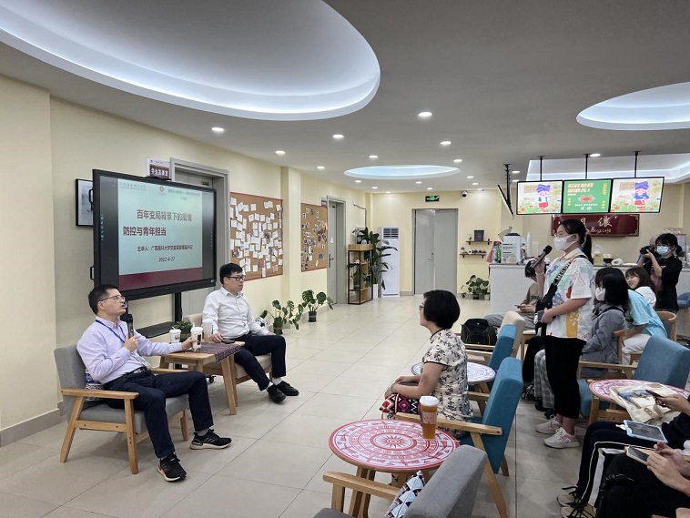 为进一步引导青年学生准确认识新冠肺炎疫情防控形势,树立科学防控意识,筑牢积极正向防疫思想,4月27日晚,成人抖音 在榕园学生之家举办“百年变局背景下的疫情防控与青年担当”主题座谈会。校党委莫曾南副书记、成人抖音 党委唐忠书记、郑茸副书记、分团委黄文瑛副书记及学生骨干代表30余人参加活动。