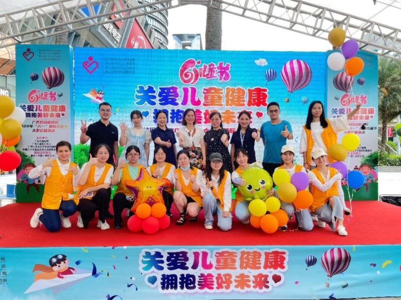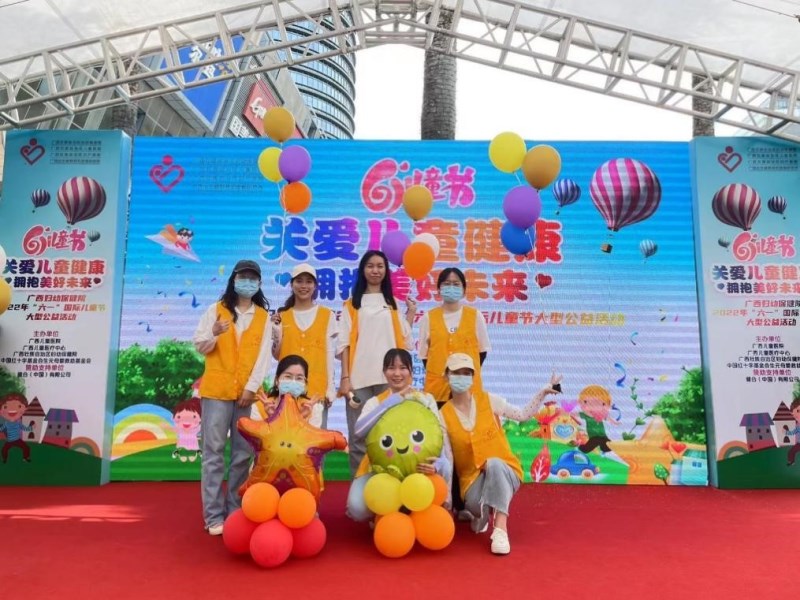 为深入贯彻习近平总书记关心关爱少年儿童健康成长重要指示精神,助力“健康广西”建设,2022年5月29日上午,广西妇幼保健院在会展航洋城开展2022年“关爱儿童健康 拥抱美好未来”——“六一”国际儿童节大型公益活动。我院“青歌”志愿者协会研究生小分队7名同学作为志愿者积极参与了此次公益活动。