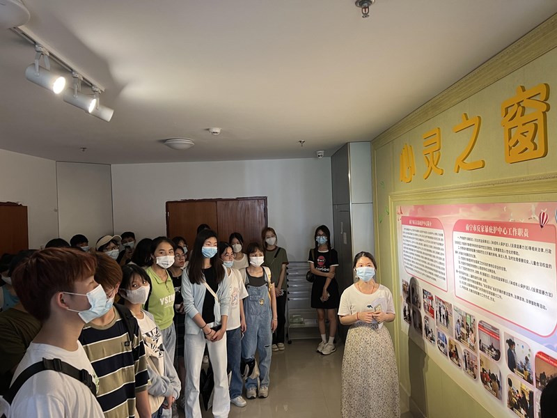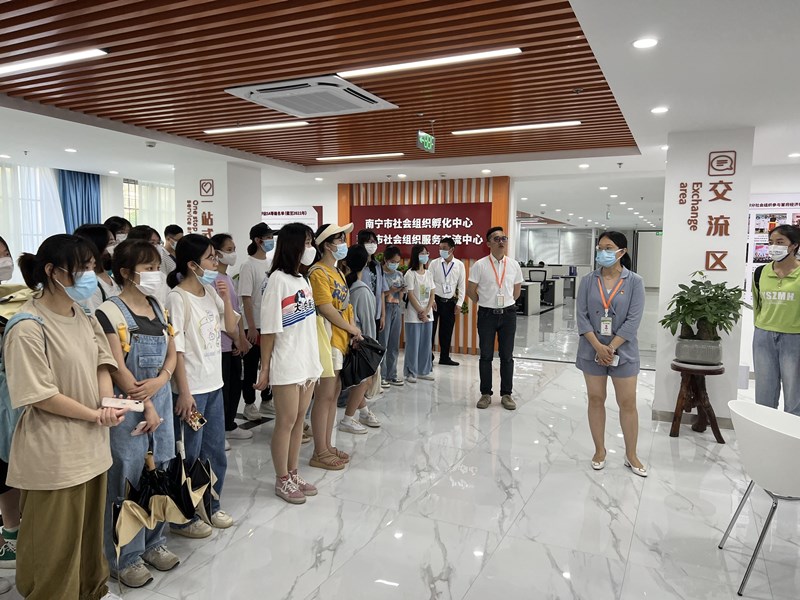 师生们在工作人员的引导下有序开展参访活动,依次参观了南宁市救助管理站“大爱寻亲”工作室、南宁市社会组织孵化中心、南宁市反家庭暴力庇护中心及南宁市妇女驿站。讲解过程中,同学们认真倾听,对各项目的主要功能、运行模式、社会效益有初步了解。