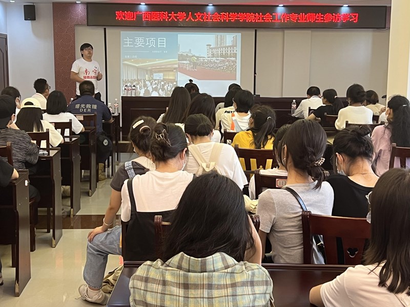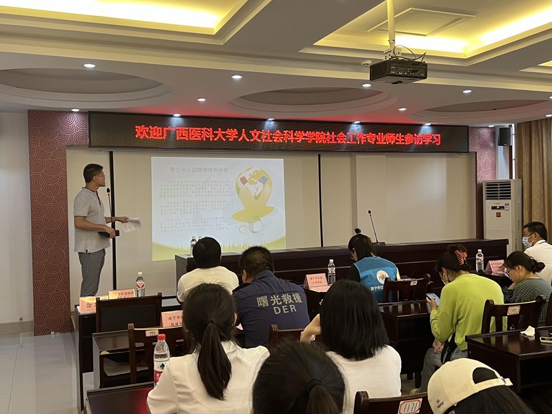 为拓宽社会工作专业本科生对行业的认识,培养社会服务意识,增强实践热情,进一步推动校社、校企协同育人,5月26日下午,成人抖音 社会工作专业2166班同学前往南宁市救助管理站、南宁市社会组织孵化中心参观学习。参访由我院社会学与社会工作系主任、2166班班级导师陈宇副教授带队,社工系专任教师胡烨、龙姝伶一同参加活动。南宁市社会组织孵化中心运营管理方——南宁市阳光雨露社会工作服务中心主任檀杏盛接待了参访师生一行。