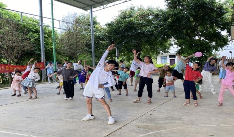 图2 大学生志愿者与定江村小朋友们共同参与游戏