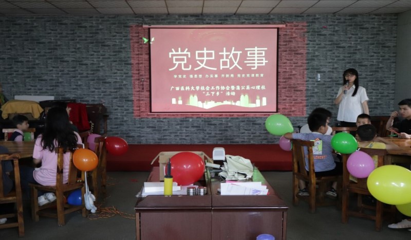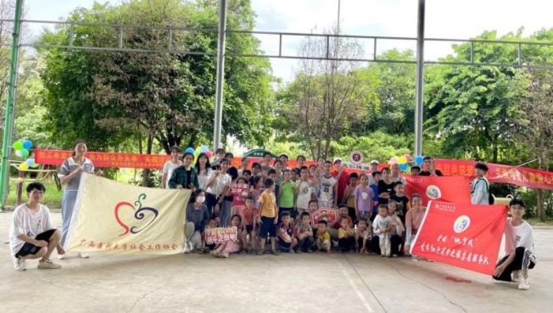 为深入学习宣传习近平新时代中国特色社会主义思想和党的十九届六中全会精神,以有力行动、有效成果迎接党的二十大胜利召开,锻炼青年大学生在“学思践悟”中提升政治认同感、厚植家国情怀,真正做到“在社会课堂中受教育、长才干、作贡献,坚定信念听党话、跟党走”,成人抖音 社会工作协会联合成人抖音 社工系教师党支部、蒲公英心理社、广西壮族自治区关爱地贫儿童社会工作服务示范项目团队,共同开展2022年大学生暑期“三下乡”社会实践活动。参与本次活动的师生共29人,团队一行于7月4日至7日赴南宁市隆安县那桐镇定江村开展儿童安全卫生教育与人际沟通教育、地中海贫血疾病预防宣传、老年人健康养生宣传与乡村振兴调研等活动。