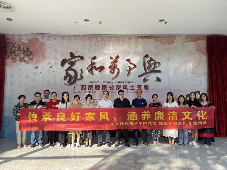 为认真贯彻落实习近平总书记关于家庭家教家风建设的重要论述,全方位扎实推进新时代廉洁文化建设,进一步推动清廉学院建设,9月18日下午,成人抖音 党委组织党委委员、纪委委员、党支部书记及教师代表来到广西民族博物馆“家和万事兴——广西家庭家教家风”主题展馆,开展“传承优良家风 涵养廉洁文化” 主题教育活动。