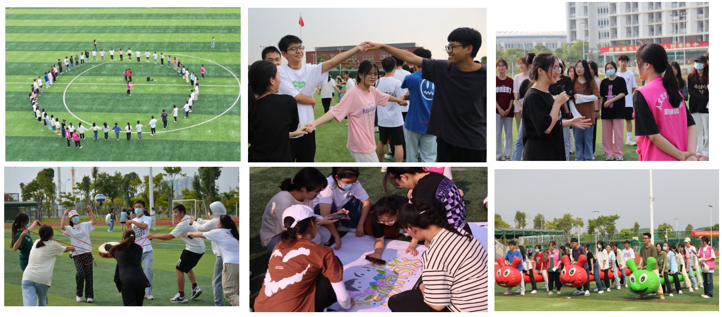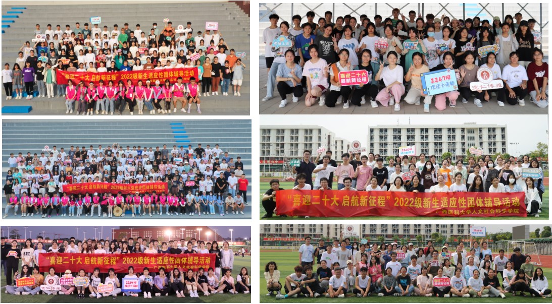 9月24、25日,学院在武鸣校区田径场开展了8场“喜迎二十大 启航新征程”新生团体辅导活动。活动分为班级破冰、班级建设和展示、班内各组比拼三个环节。新生通过“同心圆”“桃花朵朵开”“心有千千结”等热身游戏,逐渐融入到集体;在破冰游戏中相互介绍,彼此熟识,建立起团队共识和默契;在班级建设环节,进行了“班服班徽”“口号”“团队姿势”“班歌”等建设,同学们积极参与,展现精神风采。活动最后,各班分小组,在“两人三足”“同心鼓”“一圈到底”“毛毛虫大战”等游戏中展现出极强的凝聚力。