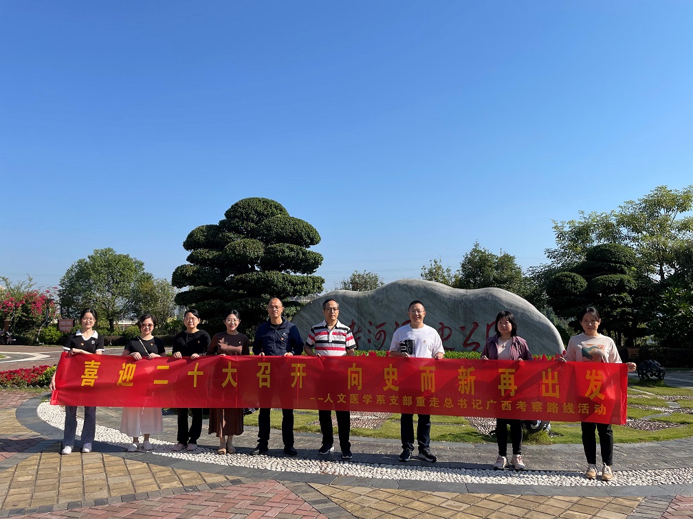 为迎接党的二十大胜利召开,10月15日上午,人文医学系党支部集体来到兴宁区,重走习近平总书记在广西考察那考河湿地公园时的路线,学习“绿水青山就是金山银山”的生态理念。