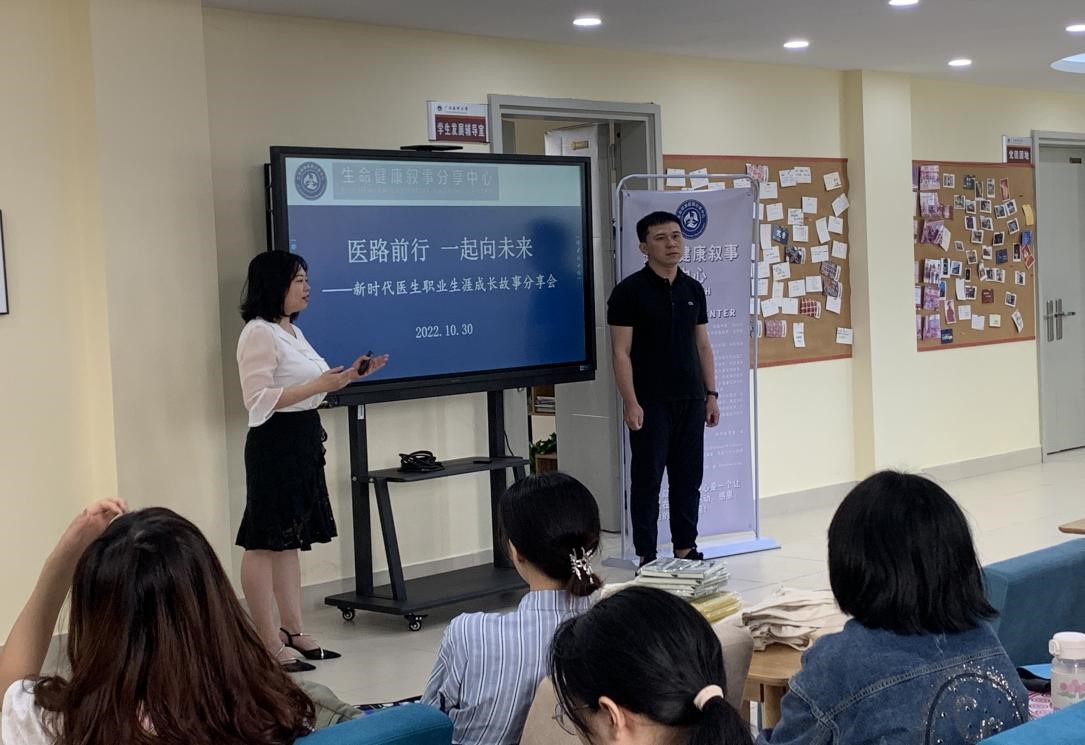 为进一步提升医学生的职业精神和人文素养,10月30日上午,由生命健康叙事分享中心主办的首期叙事医学沙龙在武鸣校区榕园学生之家成功举办。本次沙龙主题为医者职业生涯故事分享会,邀请成人抖音 第一附属医院麻醉科李春来博士作为分享者,2020级麻醉学专业的50余名学生代表参与活动。分享会由生命健康叙事分享中心副主任、人文医学系主任赵婷策划,人文医学系医患沟通教研室副主任韦宇宁主持。