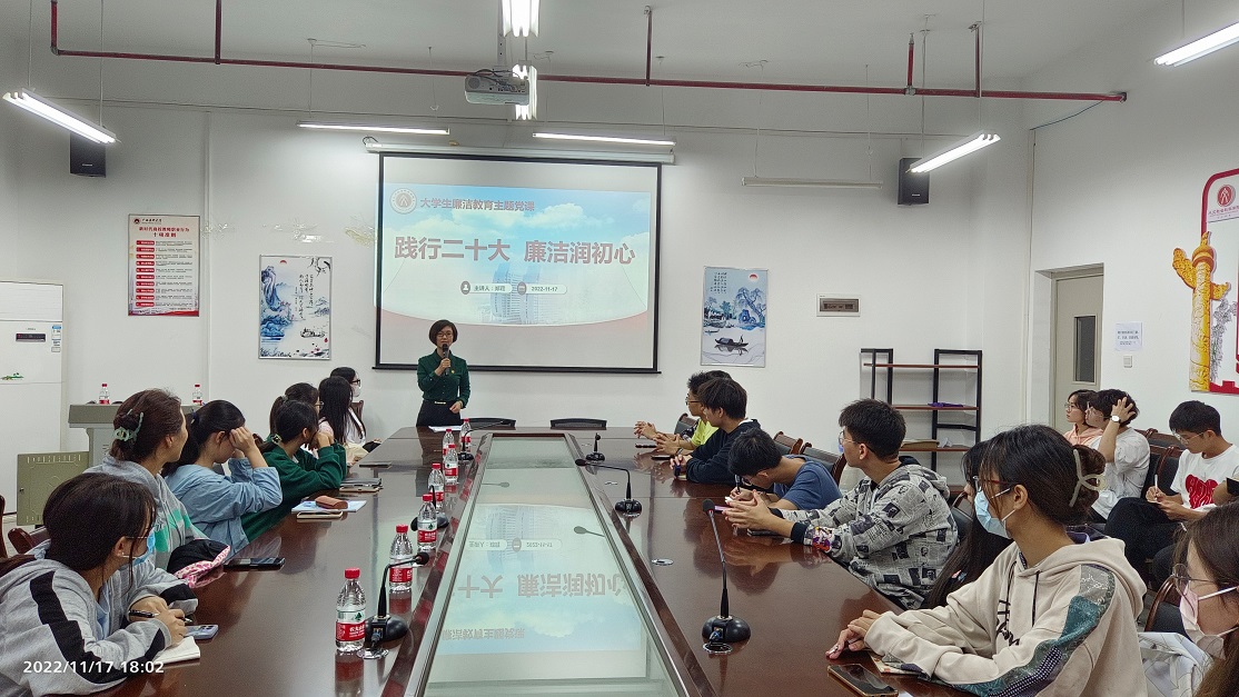 为切实加强学生干部廉洁教育,引导学生干部坚定理想信念、提升廉洁素养,2022年11月17日晚,成人抖音 党委副书记、纪委书记郑茸在武鸣校区文信楼606会议室为学生干部代表讲“践行二十大 廉洁润初心”专题党课,并开展优良学风建设调研座谈会。
