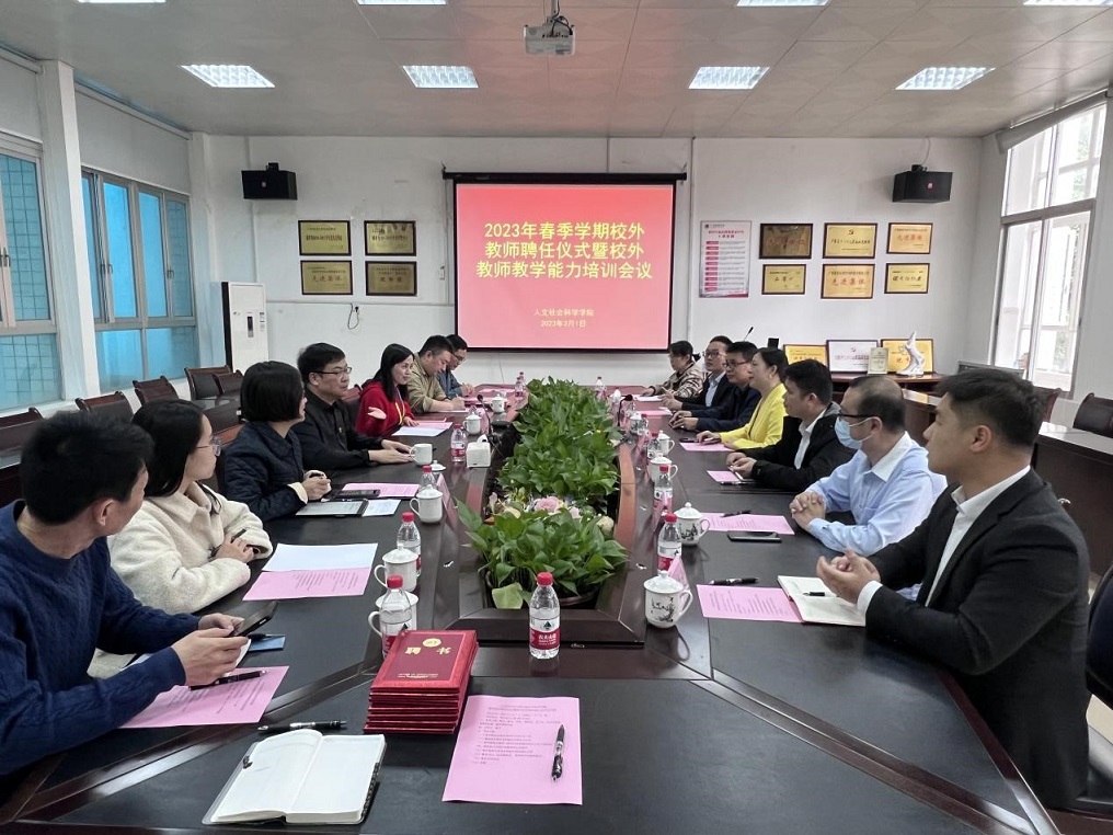 为加强外聘教师管理工作、提高外聘教师教学质量、保证新学期教学工作的顺利开展,2023年3月1日下午,成人抖音 组织召开了2022-2023年下学期外聘教师培训会暨聘任仪式,会议由学院副院长陈宇主持。学院党委书记唐忠、副书记郑茸、教研科、各系主任、教师代表及校外教师代表参加了会议。