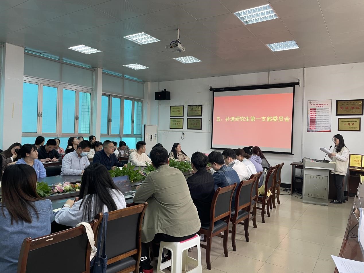 研究生党支部拆分请示的批复》的要求,2023年3月13日下午,研究生党支部在学院206会议室召开党员大会增补支部委员。会议由副书记甘露同志主持,全体党员出席会议。