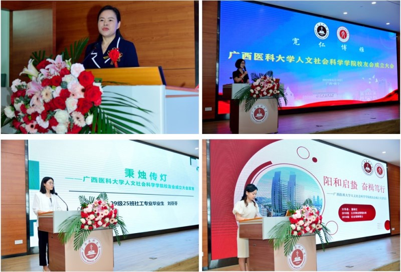 学院培养的第一届社会工作和社会医疗保障专业本科毕业生刘芬芬、董秋红代表校友发言。她们分享了学校和学院给予她们的成长助力与动力,表达了作为医大学子的荣耀,表示要继续用努力工作、奉献社会回馈母校。